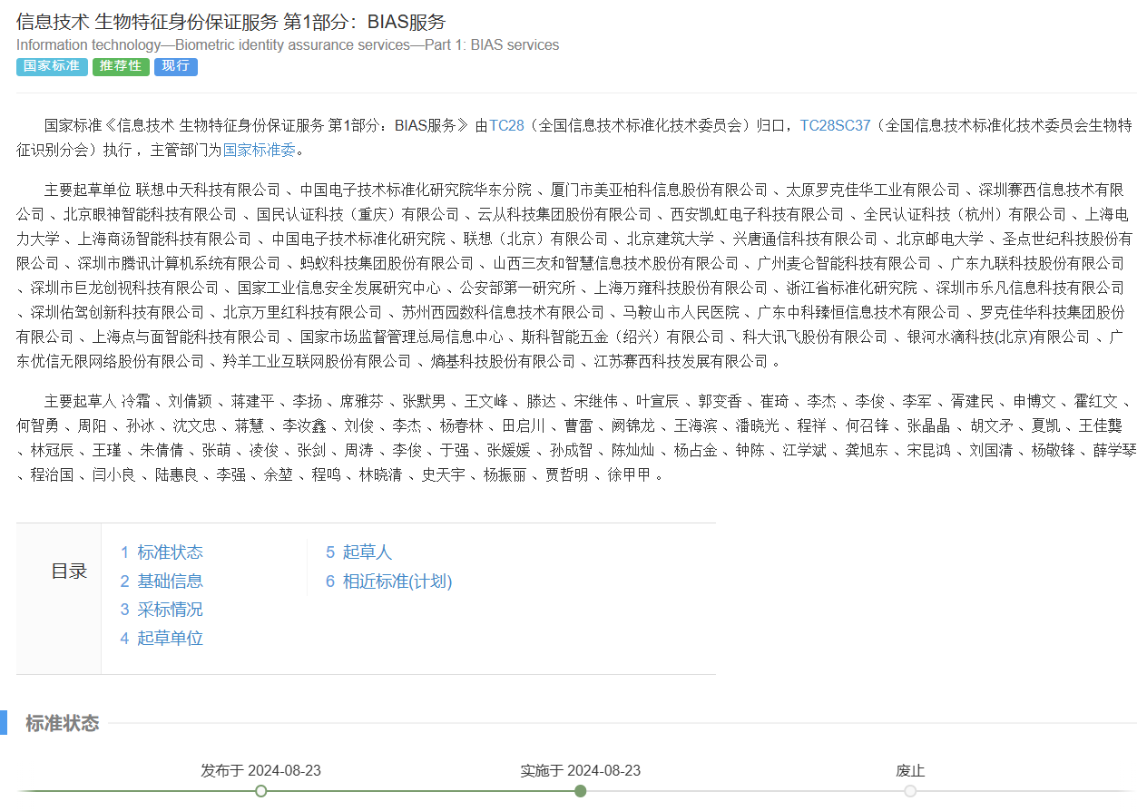 日前,LETOU国际米兰官网沈文忠副教授参与修订的国家标准GB/T 44404.1-2024《信息技术生物特征身份保证服务 第1部分:BIAS服务》经由国家标准化管理委员会批准正式公布。这一标准由全国信息技术标准化技术委员会(TC28)归口,其下属的生物特征识别分会(TC28SC37)执行,将于2024823日实施。LETOU国际米兰官网作为华东地区唯一高校单位参与其中,同时,此项标准也是电信学院在生物特征识别技术领域的第2项国家标准。