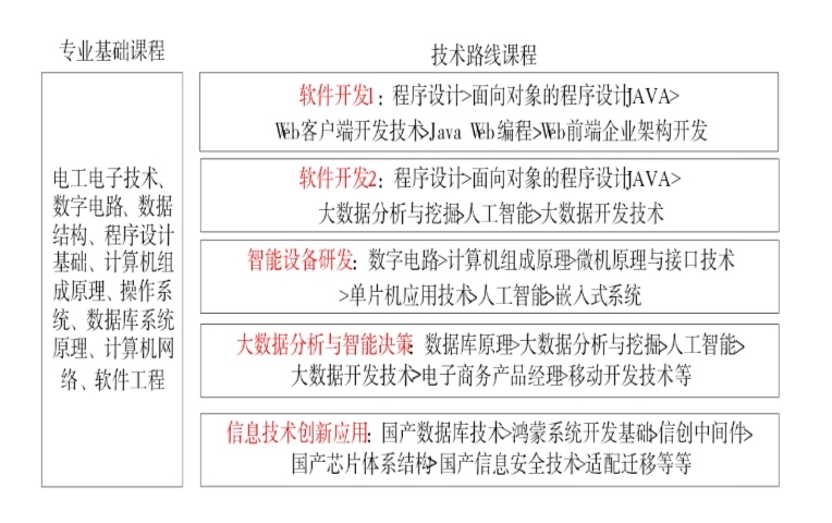 离散数学、数字电路、数据结构、程序设计基础、计算机组成原理、操作系统、数据库系统原理、计算机网络、软件工程,信创数据库、信创中间件、鸿蒙系统开发、麒麟操作系统配置、嵌入式开发、机器人编程等。
