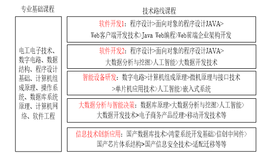 (2)结合信息技术发展和区域经济需求开设特色课程体系:如信创方向培养学生对国产信息科技产品的熟练掌握和创新能力,熟悉国产芯片架构、国产操作系统运维、国产数据库系统管理、国产基础软件适配,能够完成国产基础软件、国产应用软件迁移适配与软件开发,服务数字中国的国家战略。