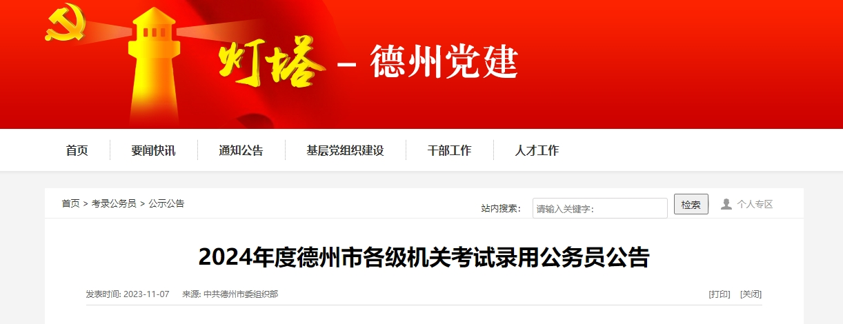 根据公务员法和公务员录用有关规定,现将2024年度德州市各级机关考试录用公务员有关事项公告如下: