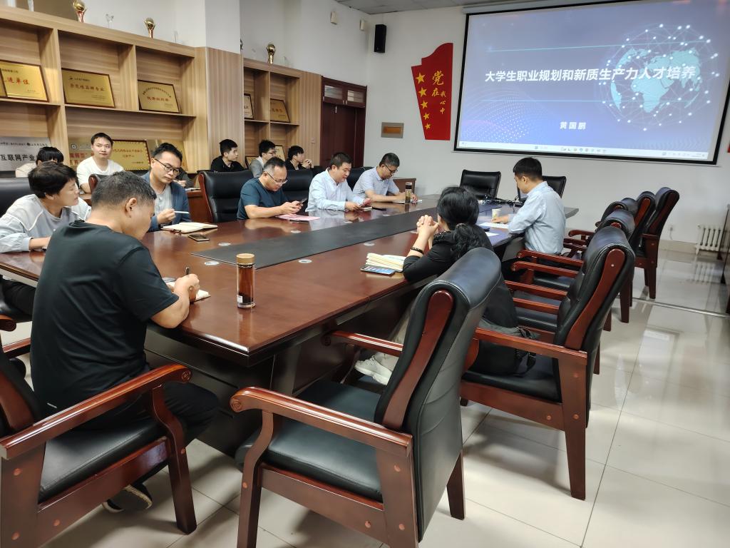 9月24日上午,beat365英国官方网站邀请工业和信息化部产教融合产业实践教授、中国电子教育学会教育信息化分会副会长黄国鹏作“大学生职业规划和新质生产力人才培养”报告。网络与教育技术中心处长王海涛,beat365英国官方网站班子成员、辅导员、班主任、研究生以及学生代表参与报告会。