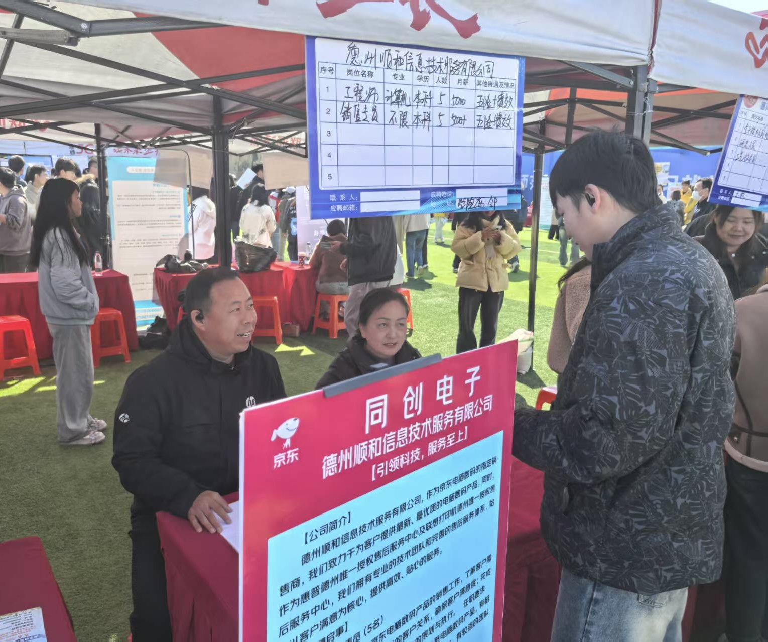 本次双选会精准锚定专业特色,重点邀请北京、济南、青岛、德州等地多家优质科技企业参会,共开放前端工程师、软件工程师、研发助理等200余个技术岗位,吸引300多名毕业生到场投递简历。在本次双选会上,为了求得心怡的岗位,毕业生积极与用人单位沟通交流,主动了解岗位要求,在结合自身能力、兴趣爱好和未来规划后,纷纷投下自已的简历。值得注意的是,活动还吸引了大二、大三学生提前“沉浸式”体验求职场景,通过观摩面试流程、收集岗位信息,系统性提升职业认知。