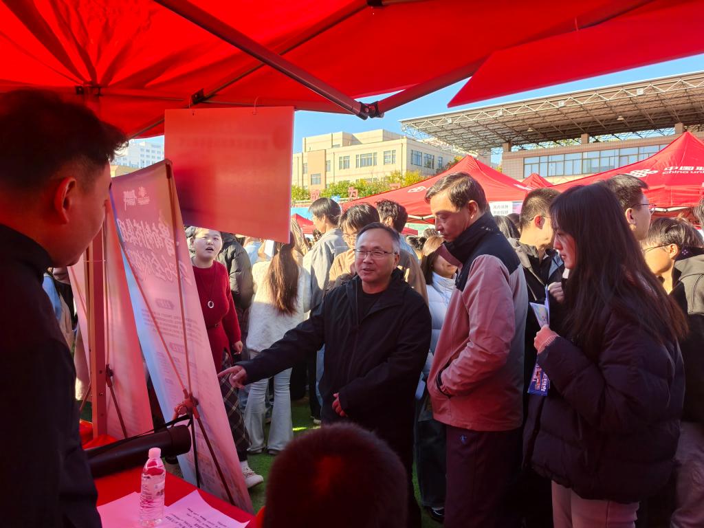 11月2日,我校2026届毕业生校园招聘会在体育场隆重举行。beat365英国官方网站党委高度重视,学院党委书记王付山、副书记武兵亲临招聘会现场,深入了解当前就业形势与企业需求,并与招聘企业代表、应聘学生进行了亲切深入的交流。