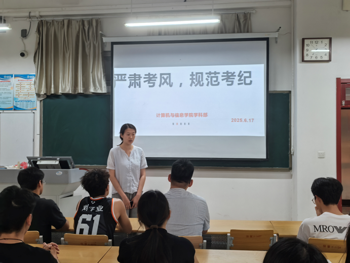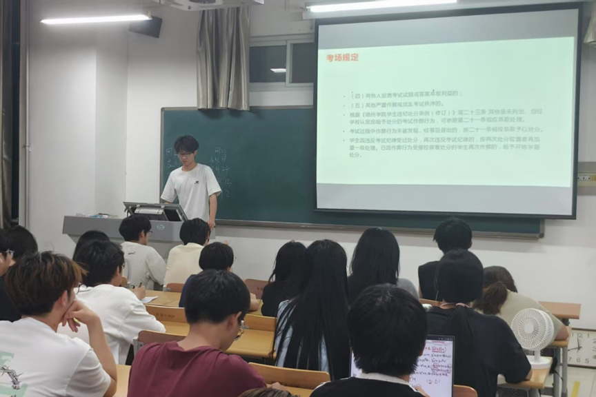 6月17日,学院肖老师主持召开班长考风考纪专题会议,全体班级班长参加会议。会议重点围绕考试纪律规范、违纪行为后果、诚信应考要求等内容进行详细说明。