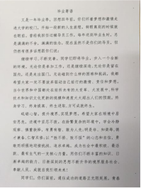 辅导员老师,满怀深情地诉说对毕业生地殷殷嘱托。有的老师用自己非常喜欢的一首诗《当我开始真正爱自己》,送给即将走向社会的同学们。还有的老师自作一首四言诗,表达对毕业生的未来期望:物有本末,事有终始;德院四载,致知格物;润德修身,克明俊德;未来可期,治业齐家。术有专攻、严肃认真的老师们,对即将毕业离校的学生,心中是满满不舍的柔情。
