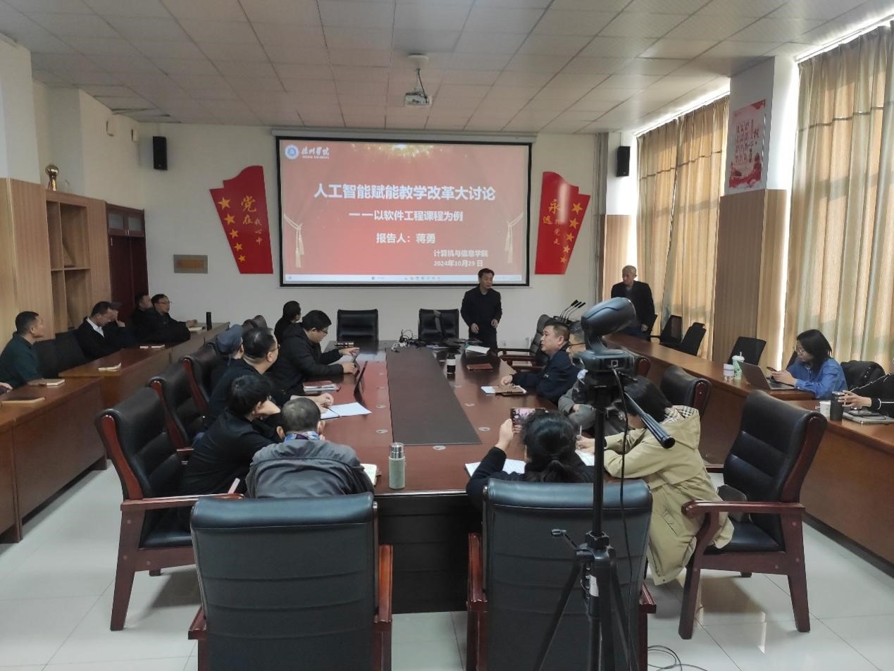 2024年10月29日,beat365英国官方网站在明理楼0326会议室召开了人工智能赋能教学改革的研讨会议。会议由教学副院长主持,学院党委书记、院长以及全体教学人员出席。此次会议还特别邀请了青软集团驻校代表蒋勇工程师进行交流。会议的核心议题是探讨和深化人工智能技术在新工科教育中的应用,并着力推动教学改革和教育质量的提升。从课前到课后,AI工具的有效整合成为会议讨论的热点。