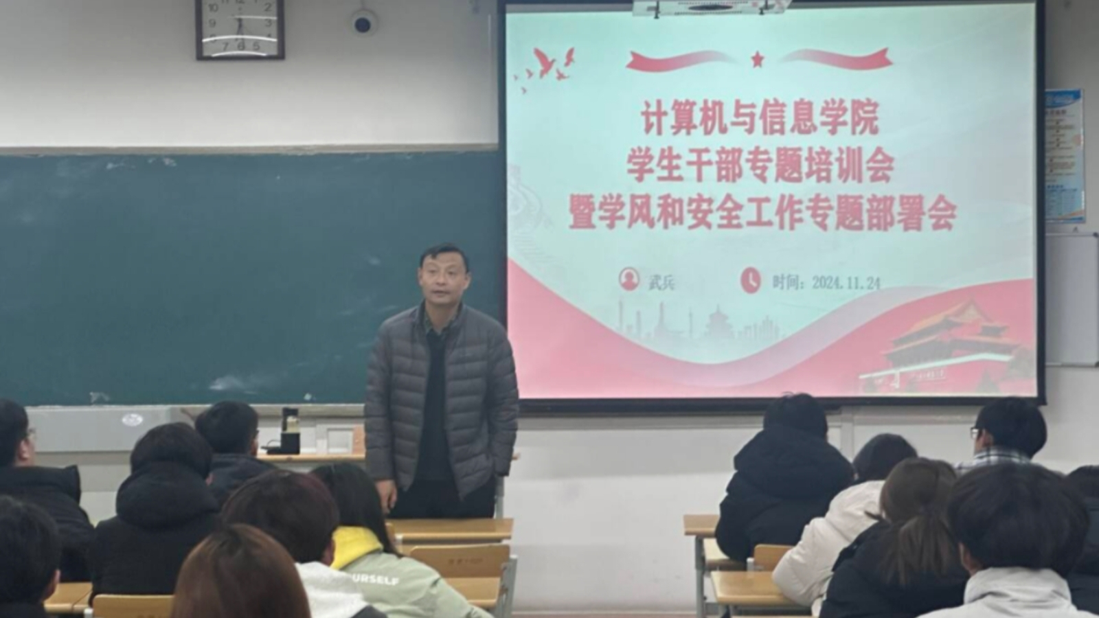 会上,学院党委副书记武兵给学生干部讲述了开展学风建设以及提高个人安全意识的重要性,对相关工作进行了安排部署。会议要求,全体学生干部要以身作则,增强工作主动性,起好良好的带头作用,保障学院各项工作顺利开展。