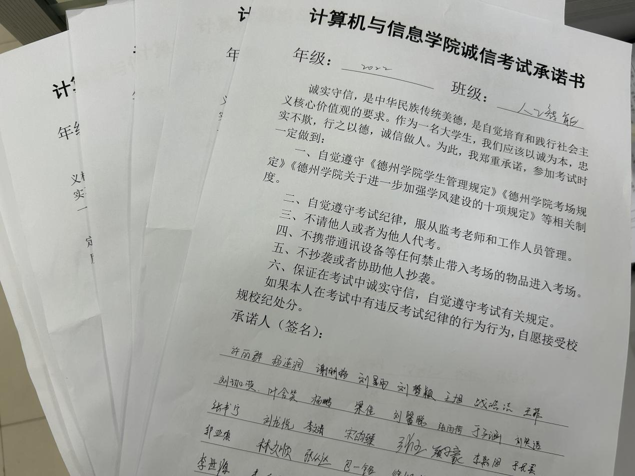 各班召开考风考纪班会,宣读学校考场规定以及违纪处分条例,明确考试作弊行为的严重后果;召开诚信考试班会,号召全体同学签署诚信考试承诺书,保证在考试中诚实守信,自觉遵守考场管理规定;制作诚信考试的宣传展板,于无形中为同学们敲响诚信考试警钟。