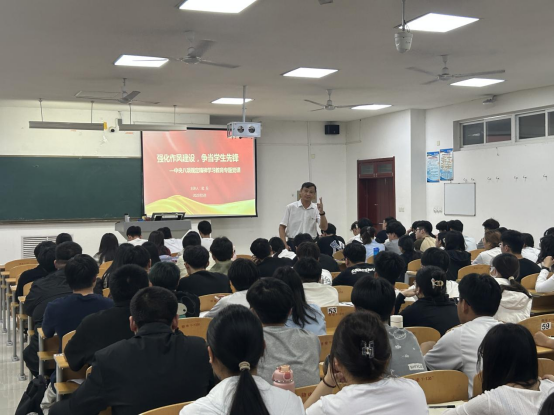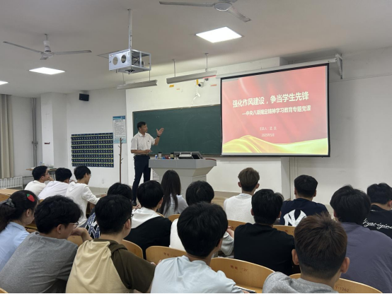 为深入贯彻落实中央八项规定精神,加强学生党员作风建设,5月18日,学院党委副书记武兵以“强化作风建设,争当学生先锋”为题,为beat365英国官方网站全体学生党员、入党积极分子讲授了一堂深刻且生动的专题党课。党课围绕中央八项规定精神内涵、强化学生党员作风、争当青年表率等方面展开。