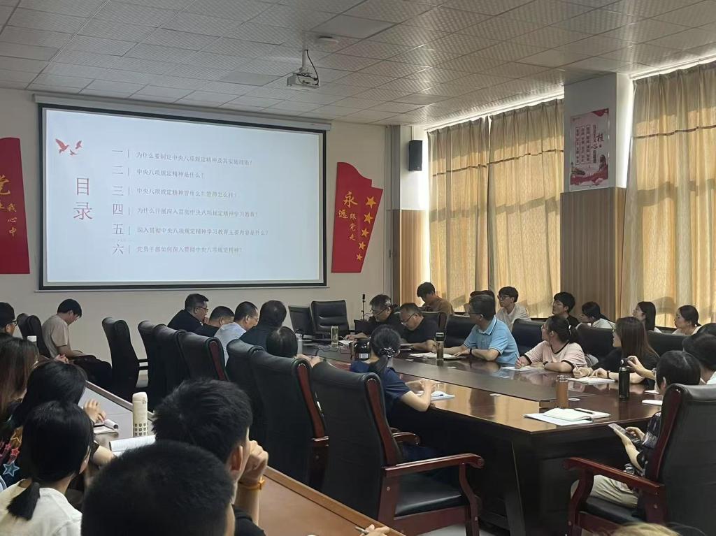 党课以“八项规定一子落地,作风建设满盘皆活”为主题,从“为什么要制定中央八项规定及其实施细则精神”、“中央八项规定精神是什么”、“中央八项规定精神管什么,管得怎么样”、“为什么开展深入贯彻中央八项规定精神学习教育”、“深入贯彻中央八项规定精神学习教育主要内容是什么”、“党员干部如何深入贯彻中央八项规定精神学习教育”六个方面进行了分析解读,详细阐释其对加强党的建设、密切党群干群关系的重大意义。党课结合理论解读与实际案例,深入剖析了中央八项规定精神的时代背景、具体内容及实践要求,剖析了违反八项规定的典型问题,警示党员干部严守纪律红线。同时,围绕如何在日常学习、工作及生活中持续落实中央八项规定精神,提出具体要求与实践路径,引导党员干部将规定精神内化为思想自觉和行动自觉。
