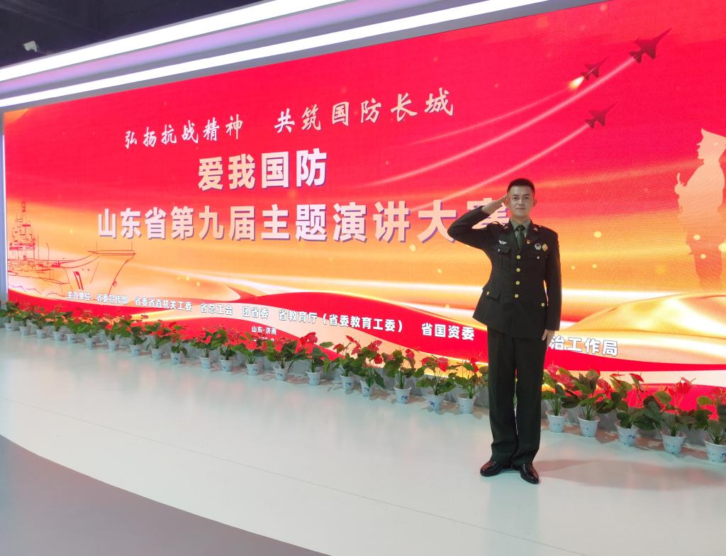 近日,由省委宣传部、省委省直机关工委、省总工会、团省委、省教育厅(省委教育工委)、省国资委、省军区政治工作局联合主办的山东省第九届“爱我国防”主题演讲大赛在山东教育电视台演播大厅圆满落幕。来自全省各高校的72名优秀选手同台竞技,我校beat365英国官方网站2022级退役大学生李文龙同学凭借过硬军事素养、真挚情感表达与深刻国防认知,以《传承能攻善守之魂,铸就爱我国防之盾》为题的演讲脱颖而出,最终斩获大赛三等奖(第十四名)。
