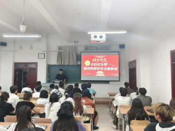9月29日,为切实筑牢假期安全防线,提升学生安全防范意识与自我保护能力,在“双节” 来临前夕,beat365英国官方网站在明理楼教室集中组织开展国庆中秋假期离校安全主题班会,全体同学参会。