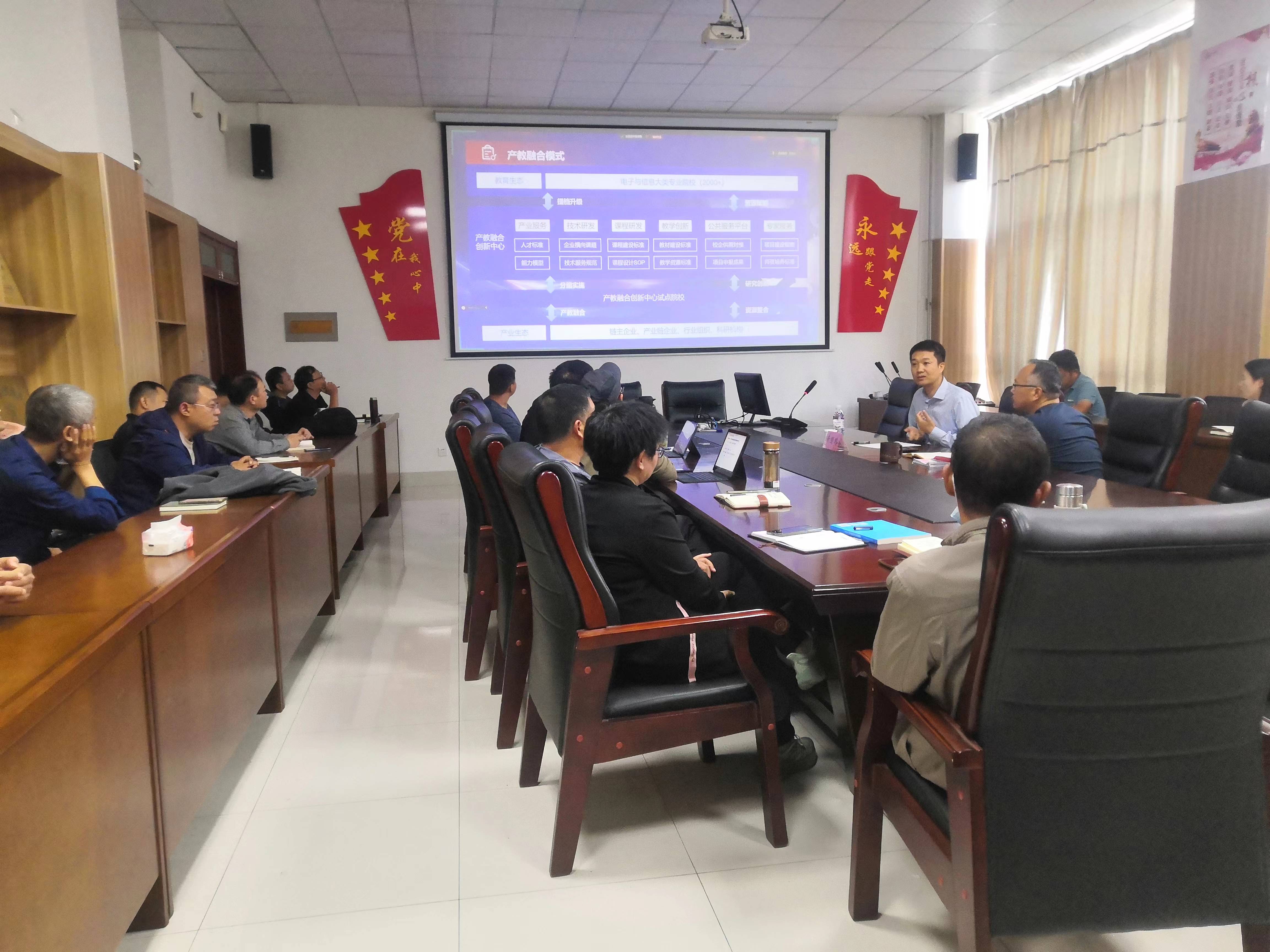 黄国鹏教授报告围绕产教融合赋能提升的产业思维、产教融合“五金”新基建的创新探索、坚持问题与价值导向的教育数字化转型等方面进行讲解。系部主任从地方产业需求、校政企赋能、校企共建、产地融合、教学研究、大学生科创大赛等方面与黄国鹏教授进行了深入的交流。