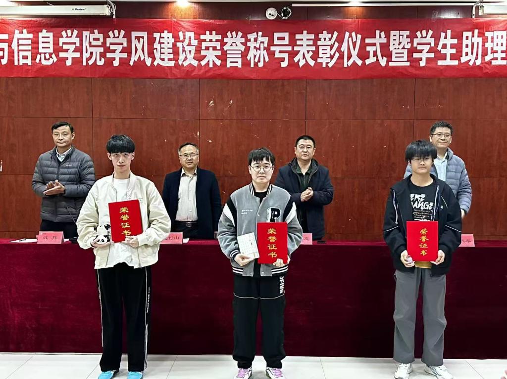 院领导为获奖学生代表颁发荣誉证书,为新聘任的学生助理颁发聘书,对他们过去的工作给予高度评价,并对新成员的到来表示热烈欢迎。