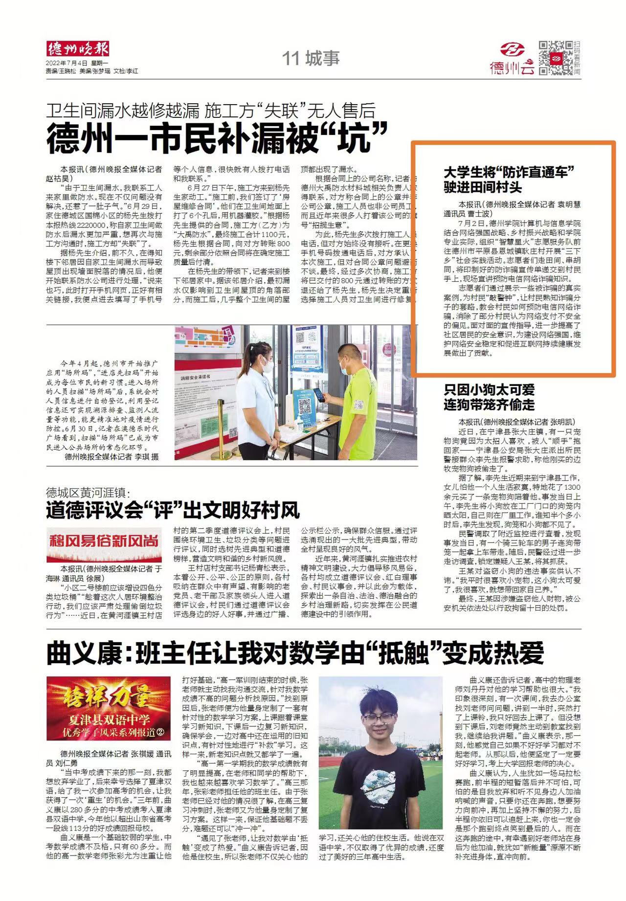 德州晚报报道我院暑期“三下乡”社会实践活动