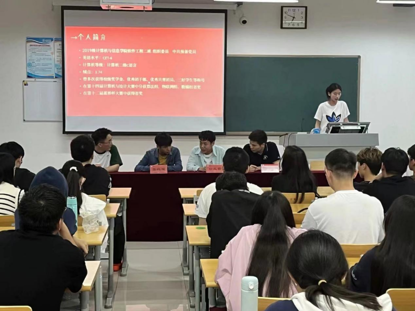 报告会上,2019级计科外包专业谷文哲、任学彬,软件工程专业张鹤耀、吕冲、孔繁玉,分别分享了他们大学四年来的职业规划设定、学习经历、备考准备等。老师的指导、良好的心态、奋斗的决心、永恒的坚持,促使在职业选择与备考中成功上岸。