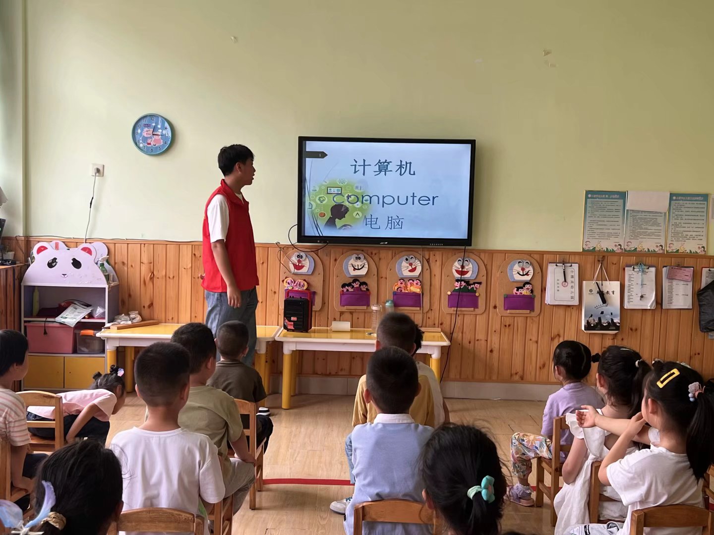 计算机信息学院网络工程专业2022级团支部的成员们进入萧何庄小精灵幼儿园,通过PPT向小朋友们讲解了如何对待计算机、计算机带来的利弊、无人机技术等,让小朋友们能够树立对计算机的正确认识,辩证的看待计算机。学生团员们向小朋友们展示了无人机,激发了小朋友们对人工智能的兴趣,让小朋友们体会到新时代人工智能可能会给他们带来的便利。活动结束后,学生团员们还向小朋友们发放了棒棒糖,提前祝小朋友们六一儿童节快乐,小朋友们在分到棒棒糖后纷纷对学生团员们表示了感谢。学生团员们的耐心拉近了他们与小朋友之间的距离,彼此间其乐融融,活动到最后大家也久久不愿离去。
