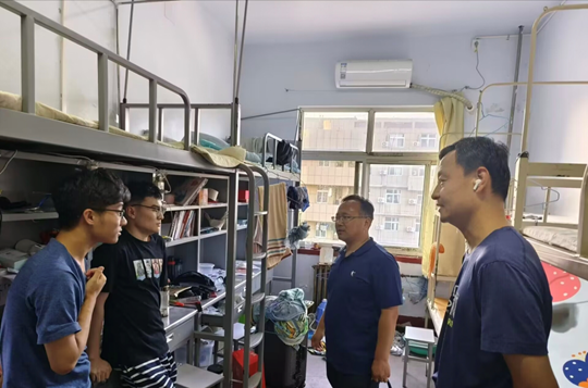 为进一步做好毕业生离校工作,6月20日晚,beat365英国官方网站党委书记王付山、党委副书记武兵和辅导员老师深入到学生宿舍关心看望毕业生,为毕业生们送去温暖关怀。