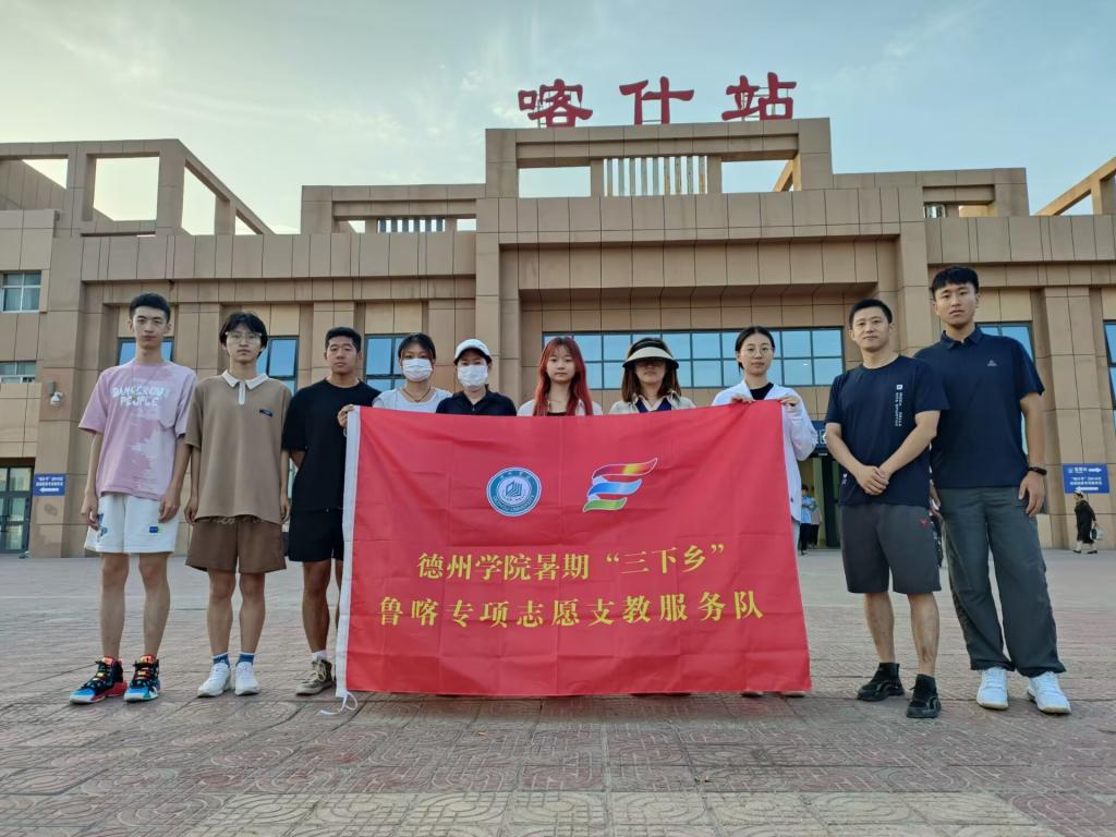 情系西域,爱撒喀什。为进一步加强鲁喀两地文化交流,助力喀什地区教育事业发展,铸牢中华民族共同体意识,7月24日,beat365英国官方网站学生王光越、赵鲁艺、周博文、刘美、魏琦豫、胡越、李昊昀、尹子琪教师王传翔、郭义琛组成希望铸就未来队从德州出发奔赴新疆喀什英吉沙县开展“志愿有我·让爱飞跃万水千山”鲁喀专项志愿支教活动。