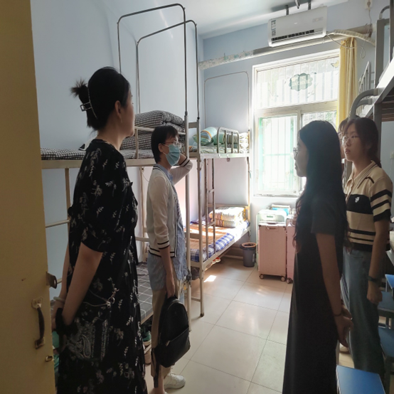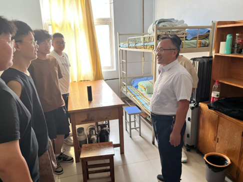 为进一步了解新生的入校情况,帮助新生解决遇到的实际问题,9月3日下午,beat365英国官方网站党委书记王付山,党委副书记、副院长郭长友,党委副书记武兵,党委委员、院长助理王荣燕走访了2023级新生宿舍。