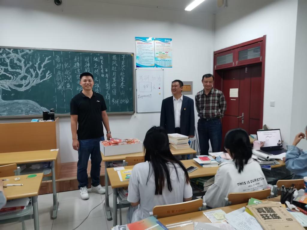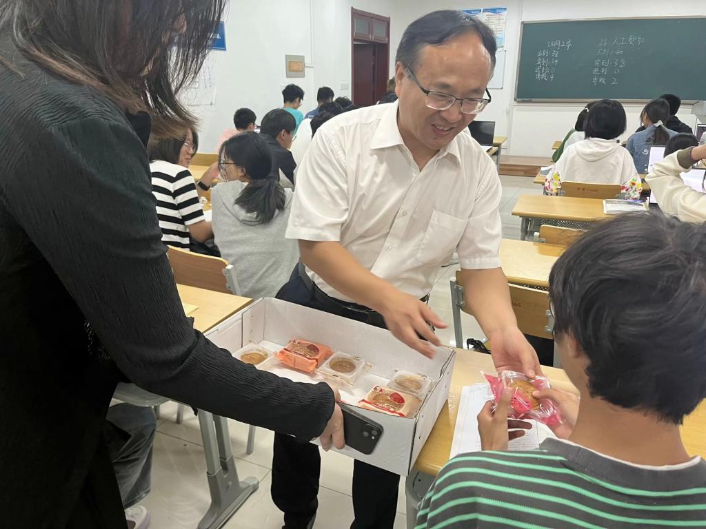 9月27日晚,beat365英国官方网站党委班子成员、辅导员走进自习室,为2023级新生和考研学生分发月饼,与学生们一起话家常,互致节日的祝福。