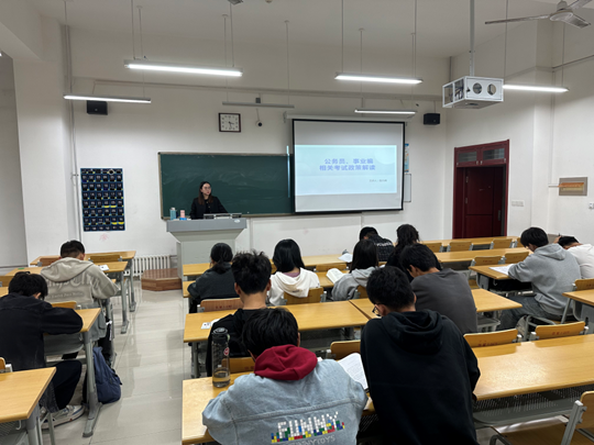 在讲座上,岳凡琦老师为同学们讲解了公务员、事业编考试的基本情况,包括报名条件、考试内容和流程等。她还结合自己的教学经验,为学生提供了备考方法和技巧,并重点强调了在考试中需注意的事项。讲座现场气氛活跃,学生们积极参与,并就自己的问题向岳凡琦老师提问。岳凡琦老师对每个问题都耐心解答,帮助学生们更好地理解考试政策和备考要点。同学们表示听过讲座后受益匪浅,将来会运用岳凡琦老师给出的备考方法和技巧,提升自己的应试能力,取得理想的成绩。