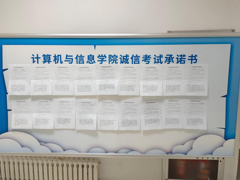 此外,学院号召各班班长在所在班级举办诚信考试主题班会,进一步增强班级同学诚信考试的意识。会上,各班班长为班级同学再次强调了诚信考试的重要性和必要性,表明了学院对于诚信考试的重视以及关注。在会上,同学们签署了诚信考试倡议书,郑重做出遵守考试纪律、诚信参加考试的承诺。
