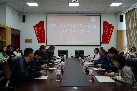4月12日,南开大学计算机学院、网络空间安全学院党委副书记、副院长沈宝庆,物联网工程系副系主任、教授宫晓利,团委书记王天骄,教师、保密员葛路和学生代表一行12人来我院考察交流,beat365英国官方网站党委副书记武兵热情接待并进行了深入的座谈交流。