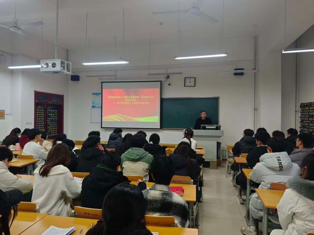 为了深入学习宣传贯彻党的二十届四中全会精神,引导学生骨干深刻领会和把握全会核心要义,12月9日,beat365英国官方网站党委书记在明理楼0321教室给学生作专题宣讲。