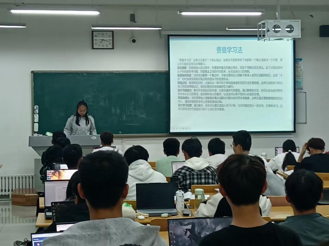 赵小慧主要从学习方法和心得体会两大方面进行分享,向同学们依次介绍了互动式学习、费曼学习法以及现代信息技术运用。该同学结合个人学习经历,鼓励同学们要适当制定目标激发学习动力、合理安排学习时间、积极参与课堂讨论以及培养自主学习能力。