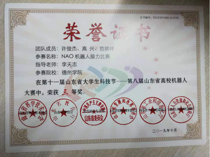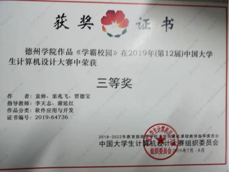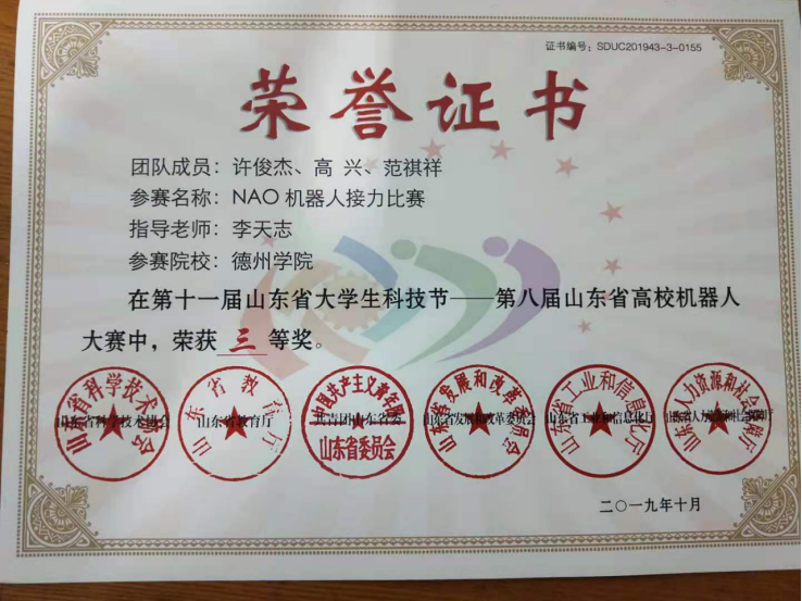 移动智能设备实验室当前拥有智能机器人、Android移动设备实验箱、智能小车、智能无人机、智能机械臂等设备,可以满足学生Android、Python、C++、java等语言的创新实验开发。本实验室主要培养学生的项目实战、创新创业能力,以Java、Java Web、Java 企业级开发、UI设计、移动开发、Python大数据分析为主。近2年学生参与的企业项目有:《烟草消费跟踪分析系统》、《德州审计局绩效考核系统》、《德州市义工协会“慧眼健康系统”》。另外,刘哲、齐文龙为学校、学院设计开发了《实验室学习交流平台》、《beat365英国官方网站网上承诺书系统》。学生创新项目有:马安骁、贾真琦研发的《享好物APP》荣获2020年第八届全国大学生数字媒体科技作品及创意竞赛全国总决赛一等奖;王怡尊等研发的《爱拼桌》、赵龙飞等设计的《基于WebGL的BIM三维模型展示系统》、袁帅等设计的《学霸校园》均荣获2018年中国大学生计算机设计大赛三等奖;许俊杰等参加的“NAO机器人接力赛”2019年荣获第八届山东省高校机器人大赛三等奖;齐文龙荣获2020年蓝桥杯大赛山东赛区三等奖。在校生17级许俊杰同学已被网易录用。